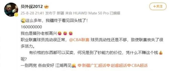 这两天的重磅交易频出,不少交易的内部也被曝了出来。比如有消息称上海男篮为了得到张镇麟,付出了超过8000万的转会费,甚至有可能达到了1.5个亿。虽然随后上海男篮对此进行了辟谣,但很多球迷都会有自己的判断。而随后又有消息传出,称赵睿加盟北京男篮的转会费更是天价,达到了惊人的1.6个亿。如果此事为真的话,那么赵睿的转会费可以说是创造了CBA转会费的新历史高度。
